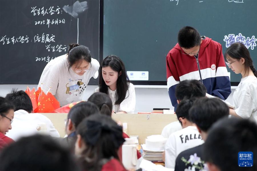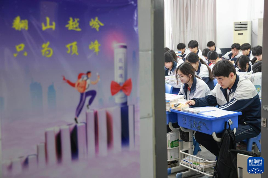 6月4日,河南省焦作市溫縣啟明實驗高中高三學生在課堂上復習備考。2025年高考在即,高三學生正加緊復習。一些學校組織減壓活動,幫助學生放松身心,以輕松、自信的心態迎接高考。(新華社發 徐宏星/攝)