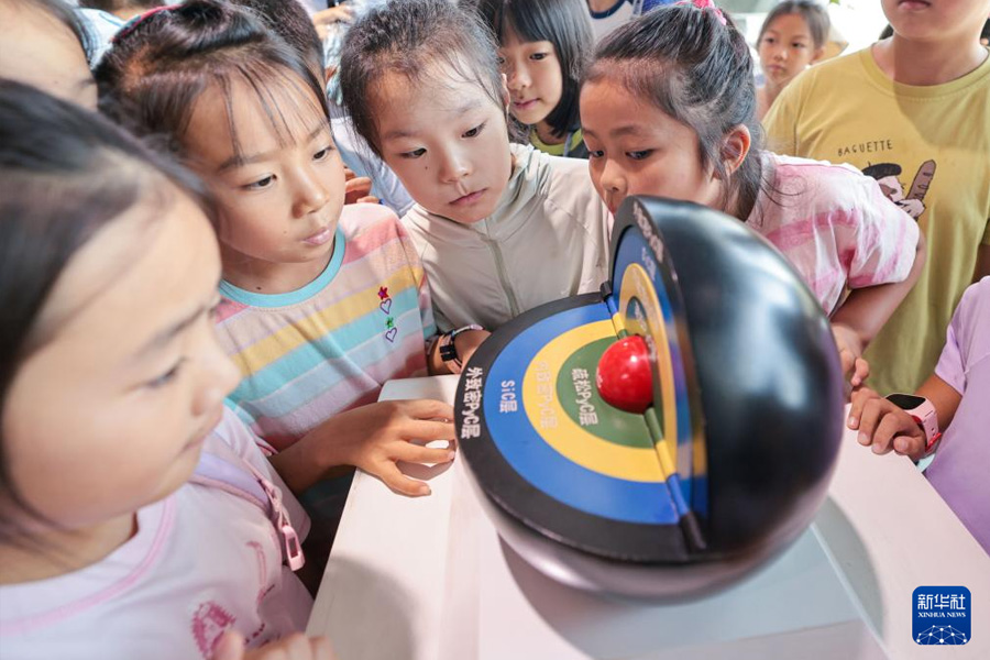 7月26日,小朋友在南京科技館觀看科普裝置。(新華社發 蘇陽/攝)